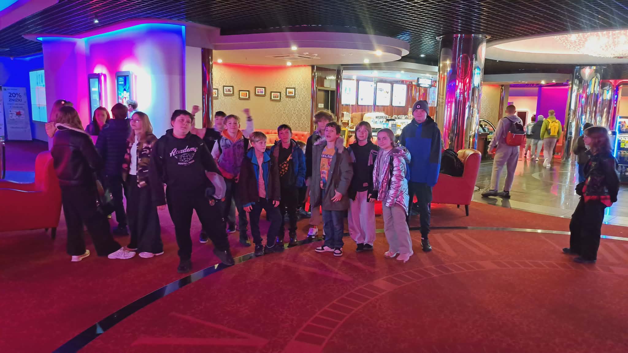 Uczniowie klas 4–8 pierwszy dzień wiosny świętowali, opuszczając szkolne ławki i wybierając się do kina na film „Zmiennokształtni 2”. Na miejscu zakupili popcorn i zajęli miejsca na sali kinowej.