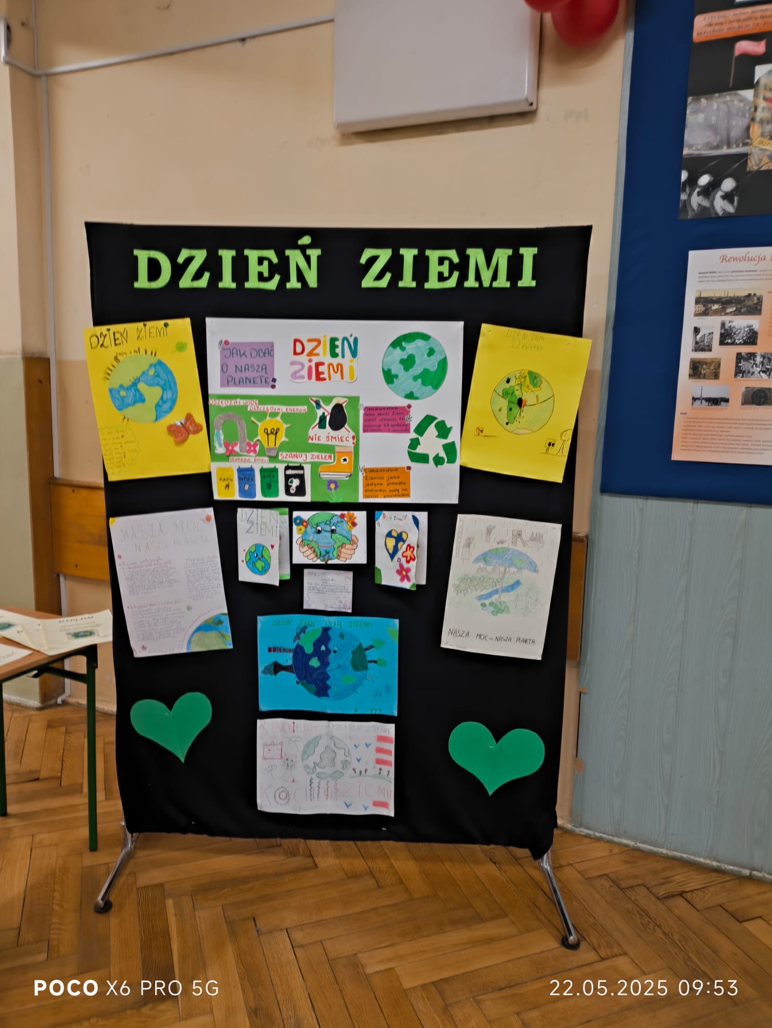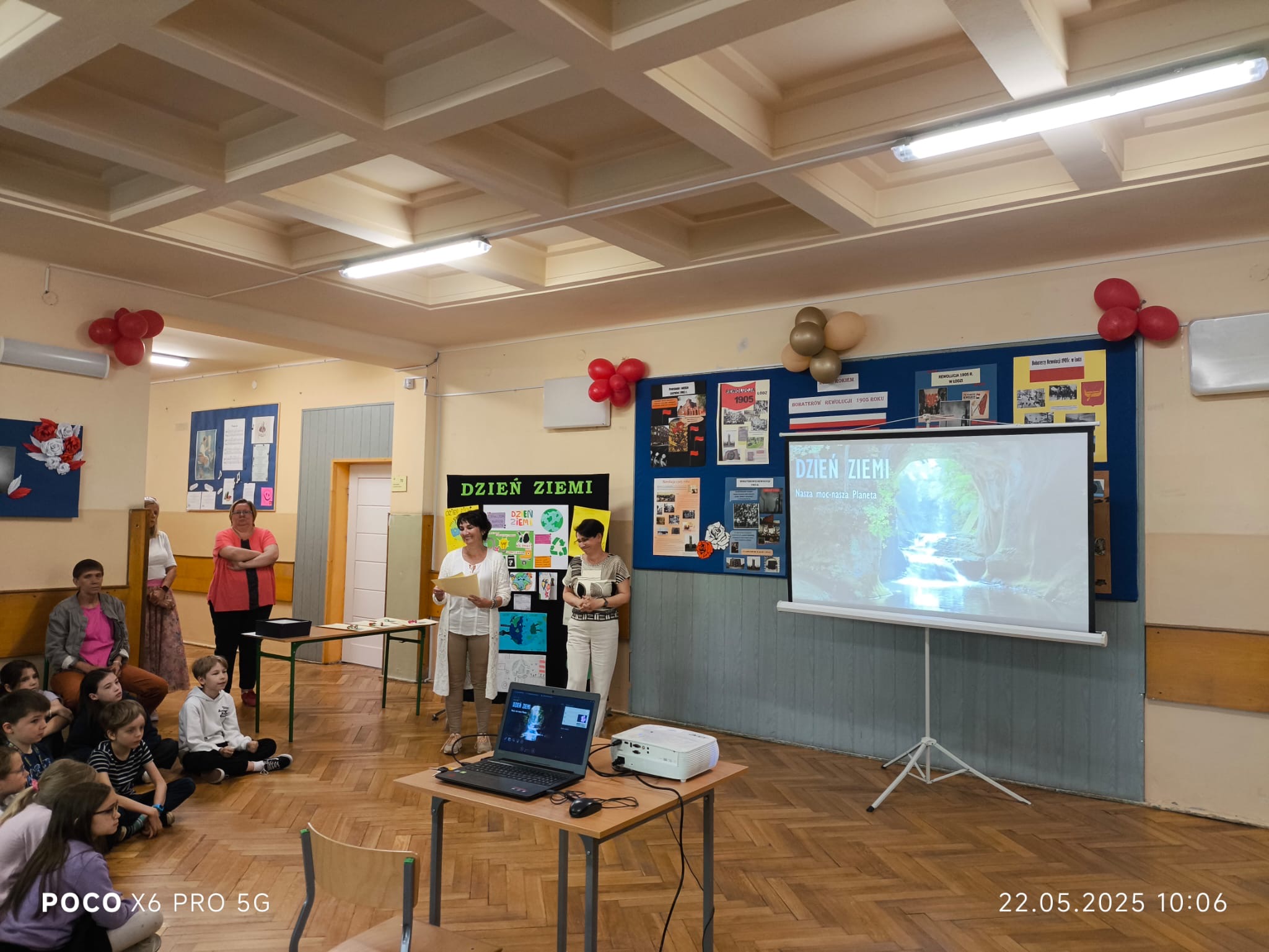 22 maja odbyło się podsumowanie projektu z okazji Światowego Dnia Ziemi. Uczniowie wszystkich klas wraz z p. Dyrektorem oraz nauczycielami zapoznali się z wynikami konkursów: