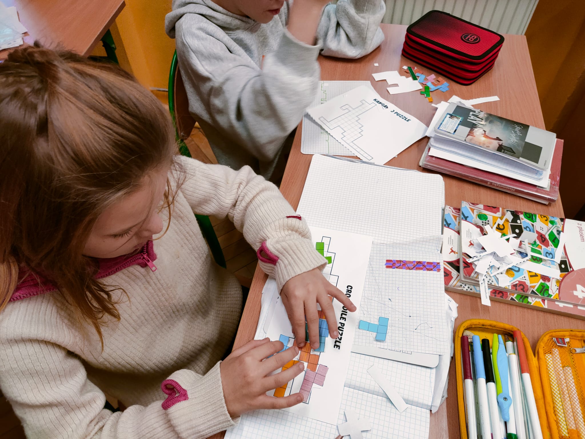 - Matematyczny poligon: zamiast tradycyjnych zadań, na lekcjach matematyki rządziły gry strategiczne i zagadki. Trzeba było wykazać się nie lada sprytem, żeby nie dać się złapać w logiczne pułapki! Były emocje, była zdrowa rywalizacja i ten bezcenny moment „AHA!”, gdy rozwiązanie nagle stawało się jasne. Pokazaliśmy, że matematyka to nie tylko liczby, ale przede wszystkim sztuka jasnego myślenia i świetna zabawa, od której aż dymiły nam głowy!
