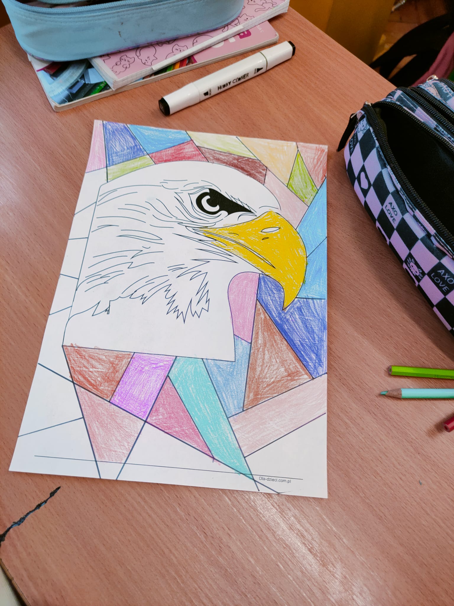 Klasa 7 tworzyła w układzie współrzędnych kontur orła. Powstały bardzo precyzyjne i efektowne rysunki. Uczniowie rozwiązywali także zadania procentowe nawiązujące do tematyki święta, a przy okazji pojawiły się różne matematyczne herby i wizerunki orła.