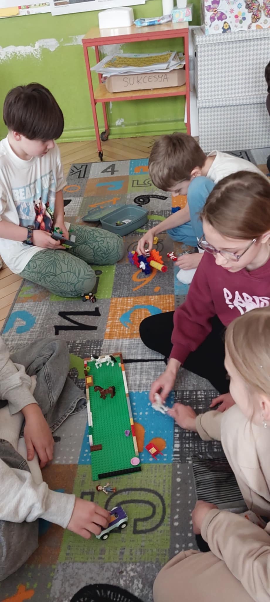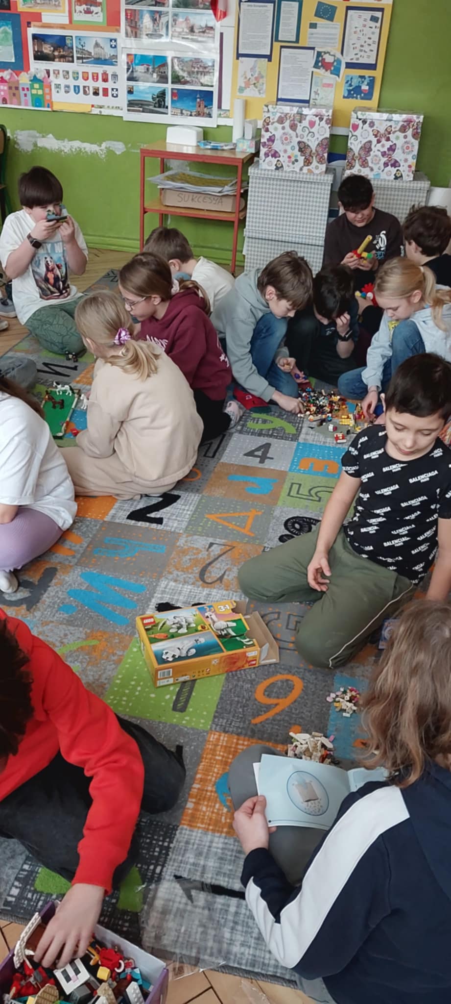 W klasie 3 odbyły się zajęcia z okazji Międzynarodowego Dnia LEGO. Dzieci przyniosły z domu różnorodne zestawy klocków LEGO, które stały się głównym elementem lekcji. Uczniowie rozwiązywali zadania matematyczne związane z liczeniem, porównywaniem i układaniem klocków, a także rozpoznawali części mowy zapisane na klockach LEGO. Zajęcia miały charakter edukacyjno-integracyjny – sprzyjały współpracy, rozwijały kreatywność oraz umiejętność logicznego myślenia. Wspólna zabawa z klockami zintegrowała grupę i dała dzieciom poczucie atrakcyjnie oraz wartościowo spędzonego czasu.