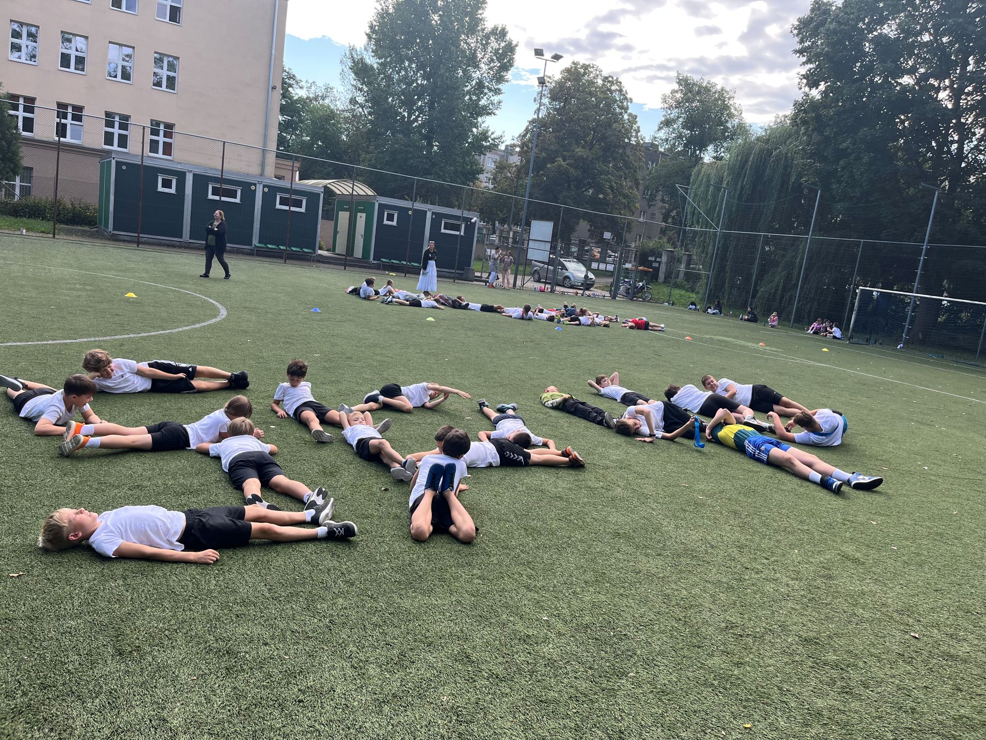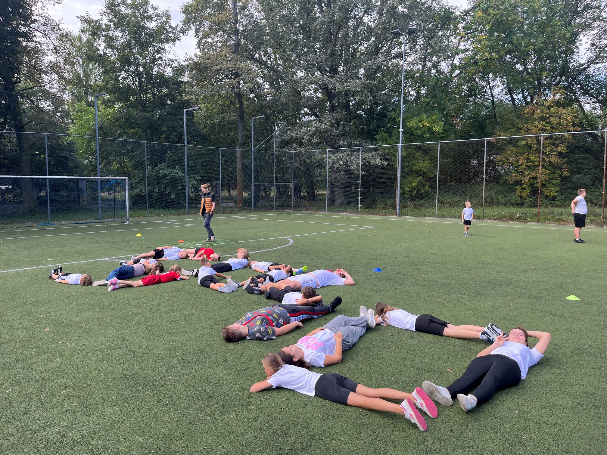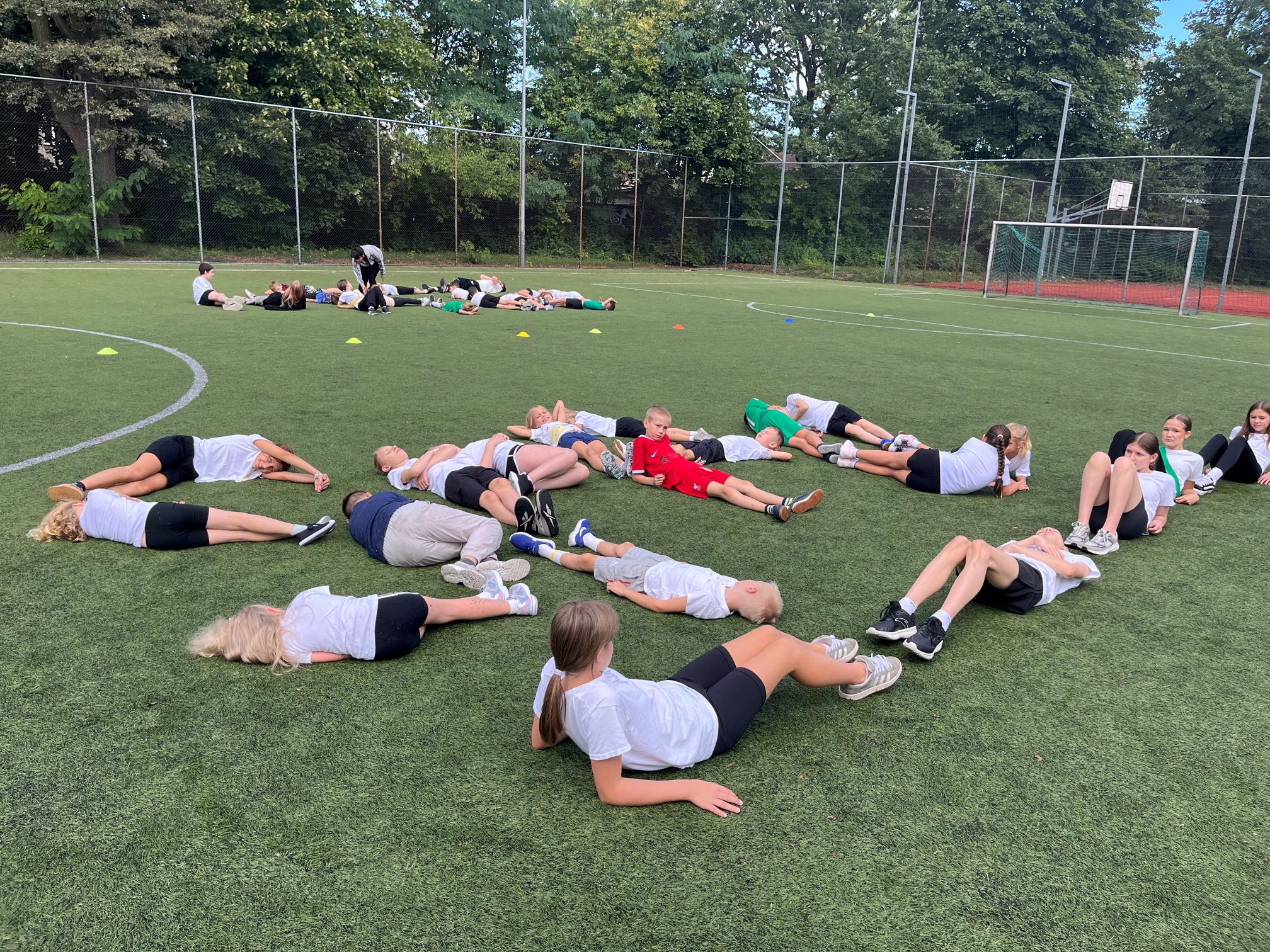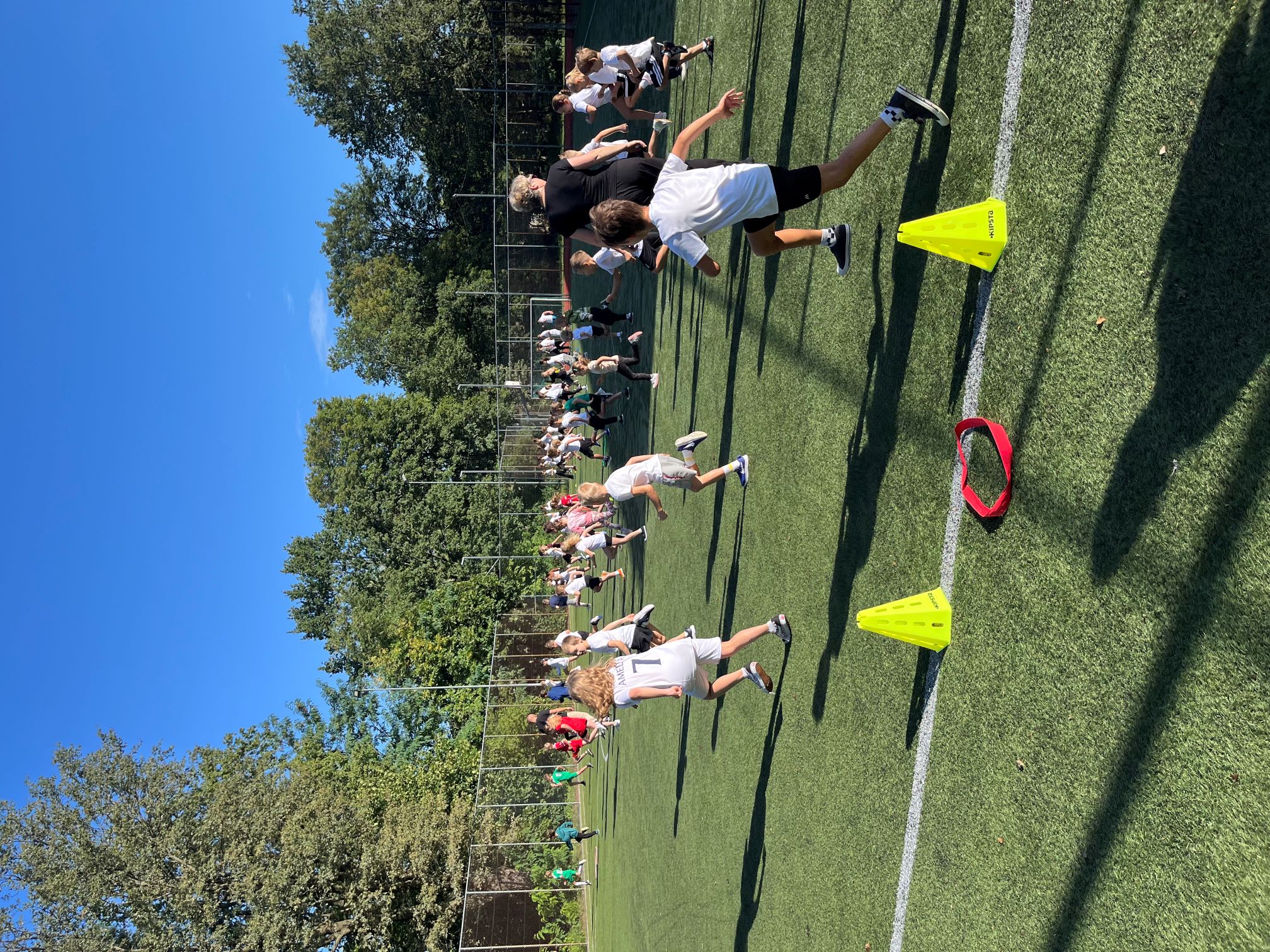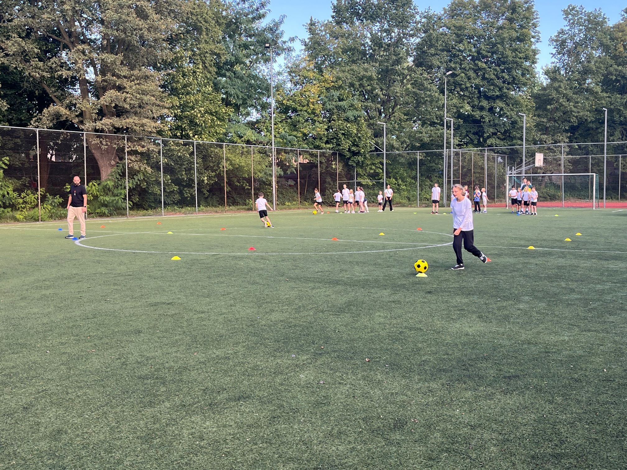 Cała szkoła udała się na pobliski Orlik, gdzie dzień rozpoczęliśmy wspólną rozgrzewką w promieniach słońca. Następnie uczniowie zostali podzieleni na drużyny i rywalizowali w różnych konkurencjach sportowych. Było dużo emocji, energii i radości – uczniowie wykazali się szybkością, precyzją i sprytem.
