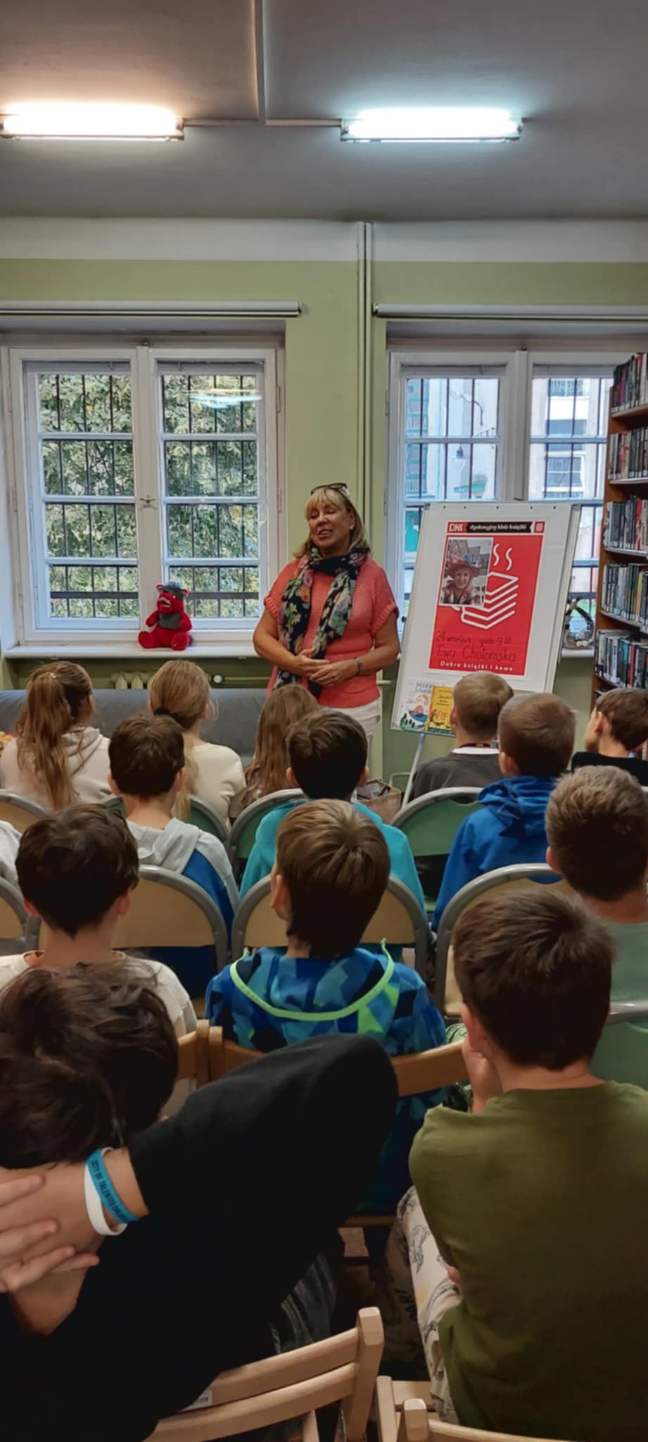 Dnia 23 września uczniowie klasy 2 i 3 wzięli udział w spotkaniu autorskim z pisarką Ewą Chotomską w filii nr 23 biblioteki rejonowej. Autorka opowiadała o swojej twórczości, pracy pisarskiej oraz o tym, skąd czerpie pomysły do książek. Uczniowie mieli okazję zadawać pytania, wysłuchać ciekawych historii, a także dowiedzieć się wielu nowych rzeczy o świecie literatury dziecięcej. Spotkanie przebiegło w miłej atmosferze i zakończyło się wspólnym zdjęciem oraz rozdaniem autografów.