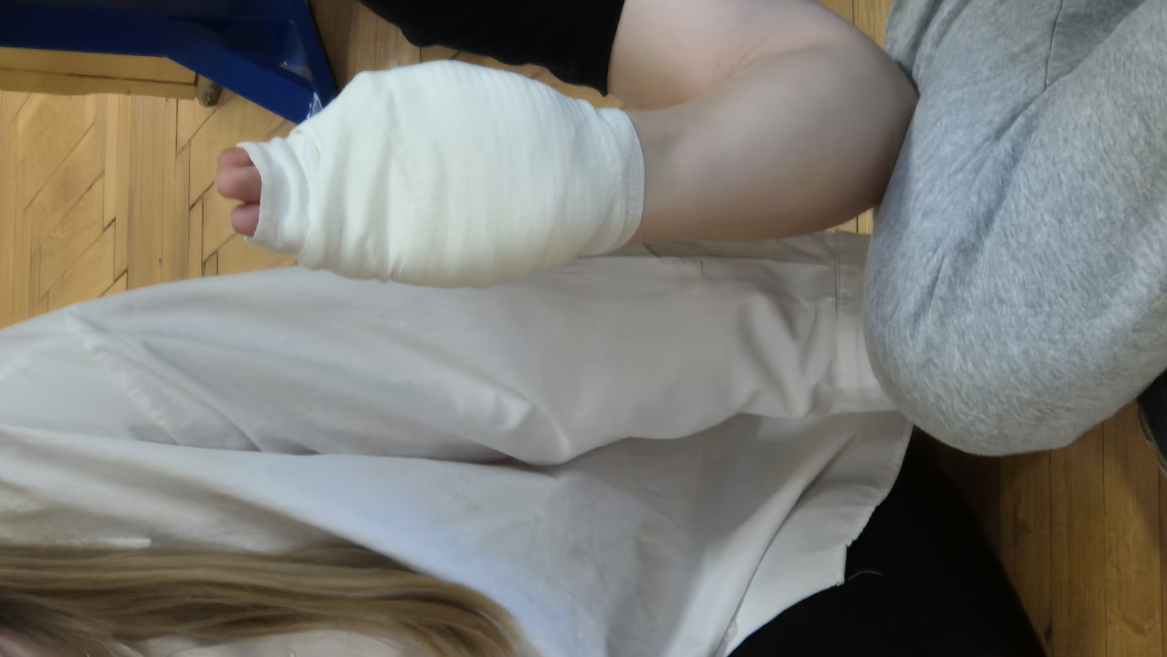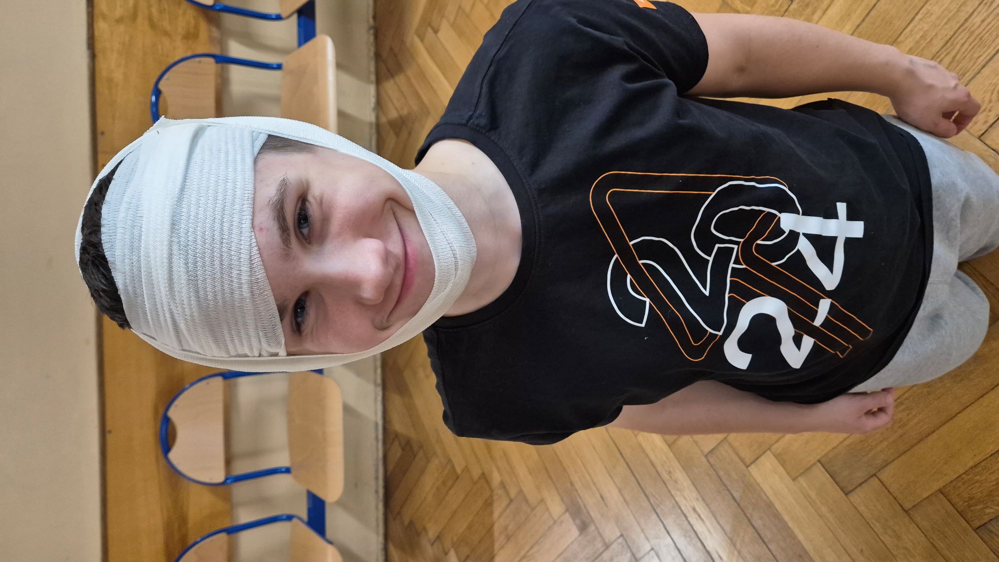W tym tygodniu na zajęciach edukacji dla bezpieczeństwa w klasie 8 był realizowany temat opatrywanie ran. Były to zajęcia praktyczne, które wcześniej były poprzedzone zajęciami teoretycznymi. Z teorii uczniowie dowiedzieli się jakie są rodzaje ran i kiedy zakładamy opatrunek osłaniający, a kiedy uciskowy. W czasie ćwiczeń praktycznych uczniowie wykonywali opatrunki kostki dłoni, głowy uda, klatki piersiowej itp. Zajęcia były bardzo ciekawe, a uczniowie chętnie opatrywali swoich kolegów i koleżanki. Dopisywały im też przy tym humory.