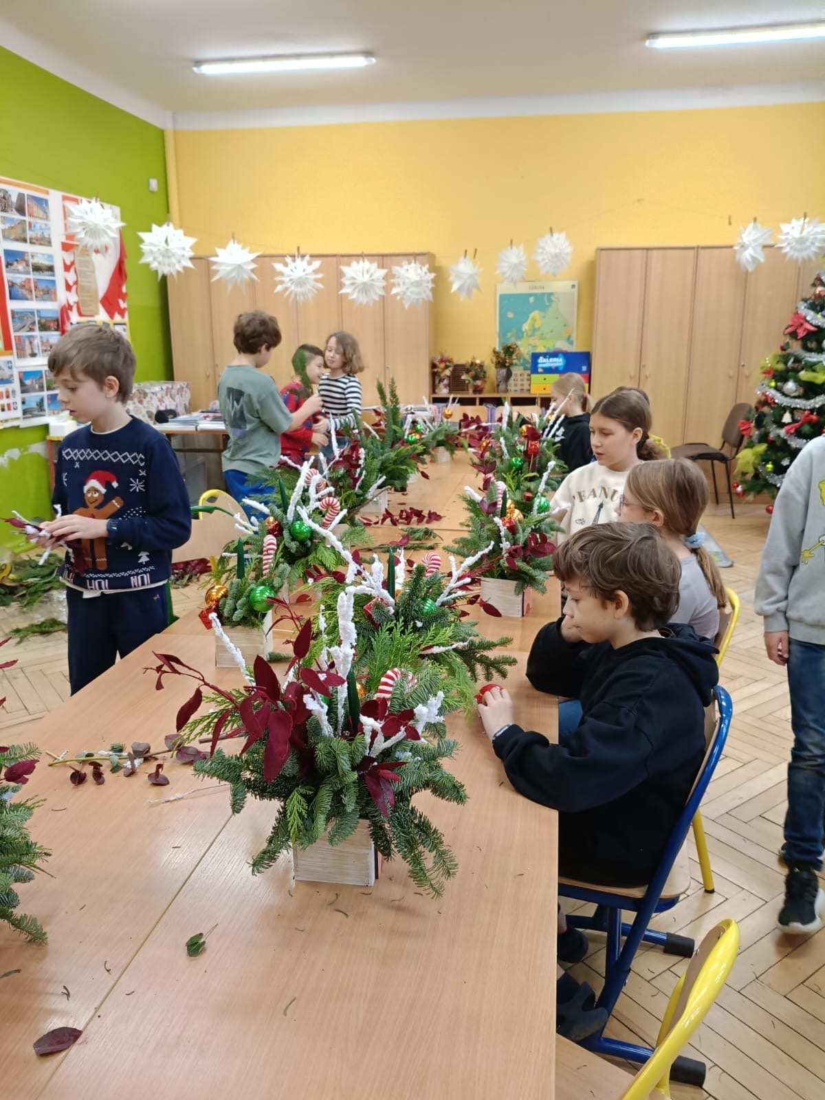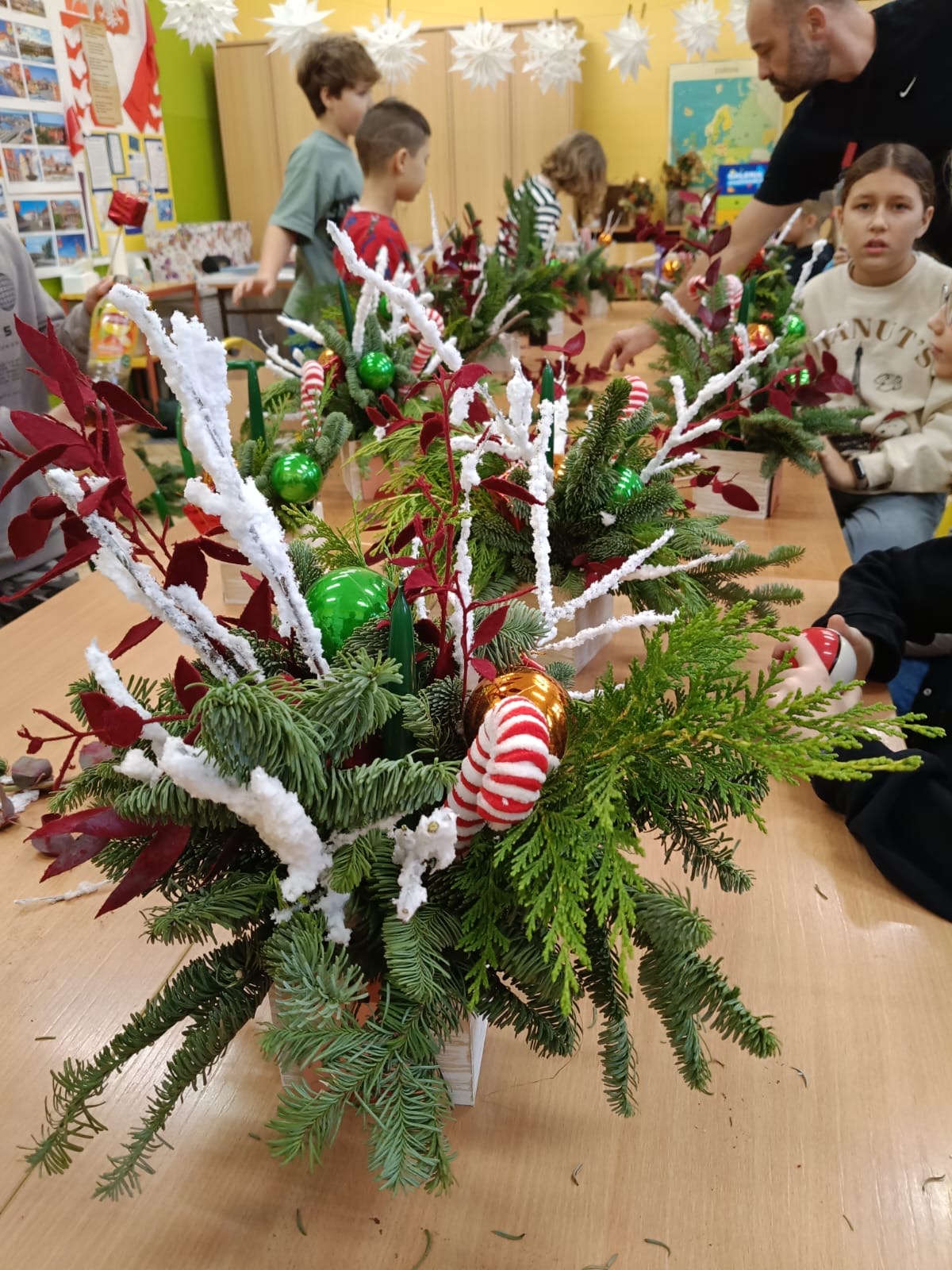 Uczniowie wykazali się dużą kreatywnością i starannością, wykonując wyjątkowe stroiki, które mogli zabrać do domu. Dekoracje te z pewnością przystroją pokoje i mieszkania, a być może staną się także pięknym, własnoręcznie wykonanym prezentem dla bliskich.