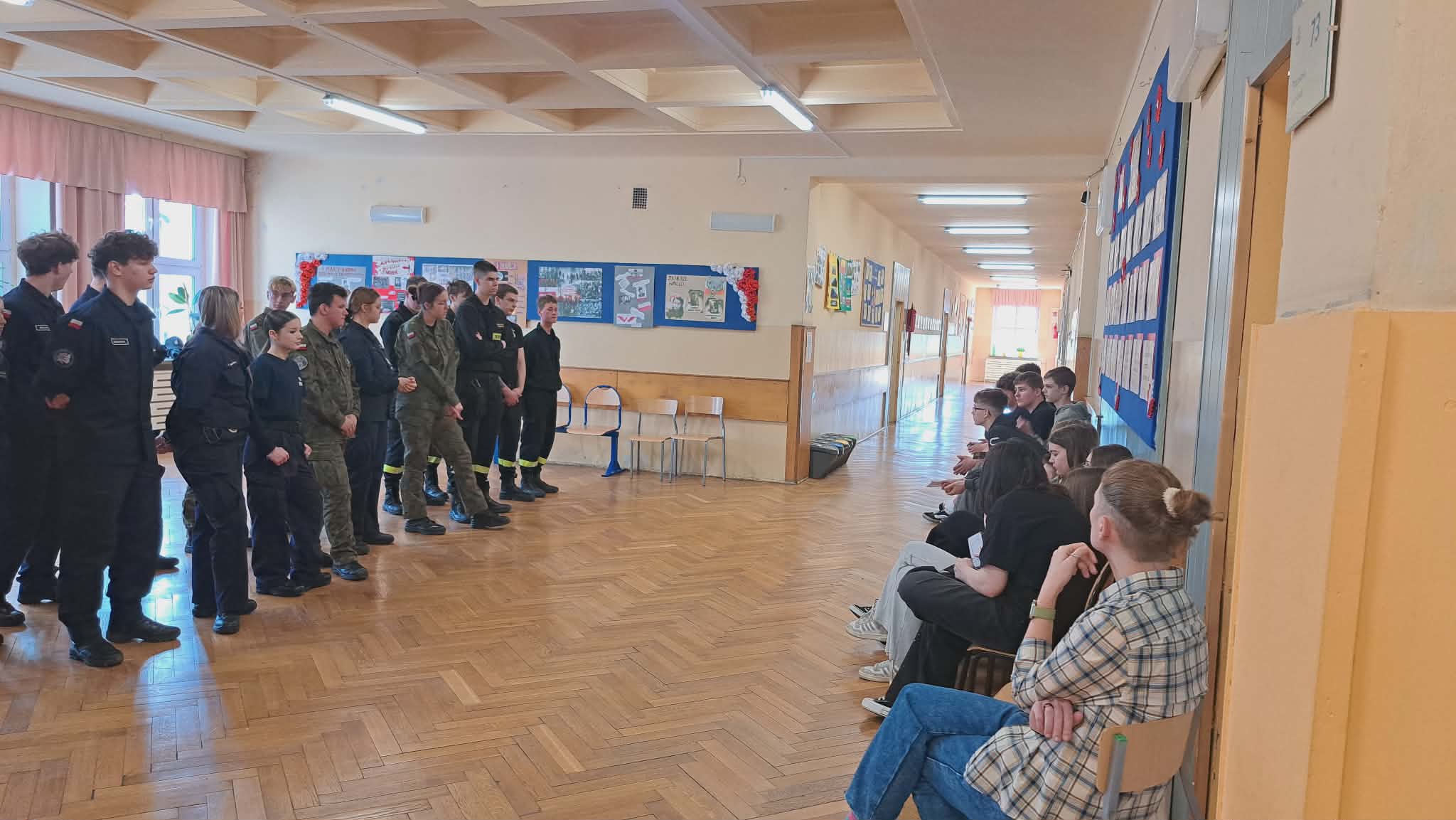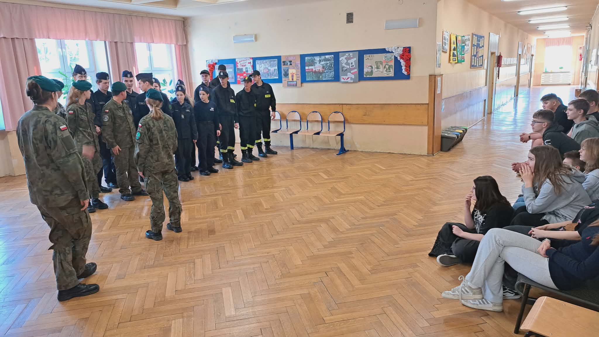Podczas spotkania mogliśmy zapoznać się z kierunkami kształcenia oraz zobaczyć pokaz musztry. Uczniowie zaprezentowali również, w jaki sposób udzielać pierwszej pomocy, co było bardzo ciekawym i pouczającym doświadczeniem.