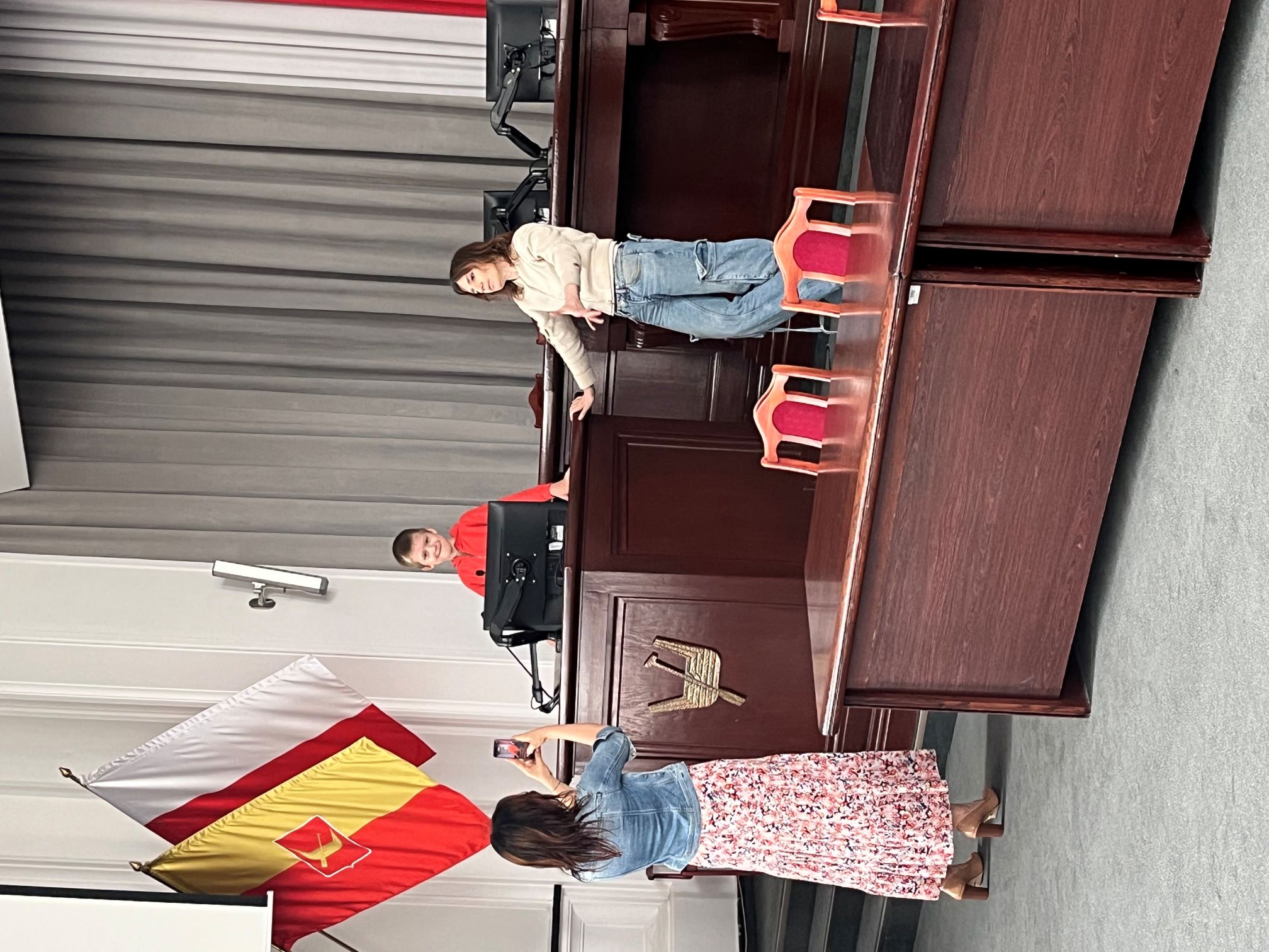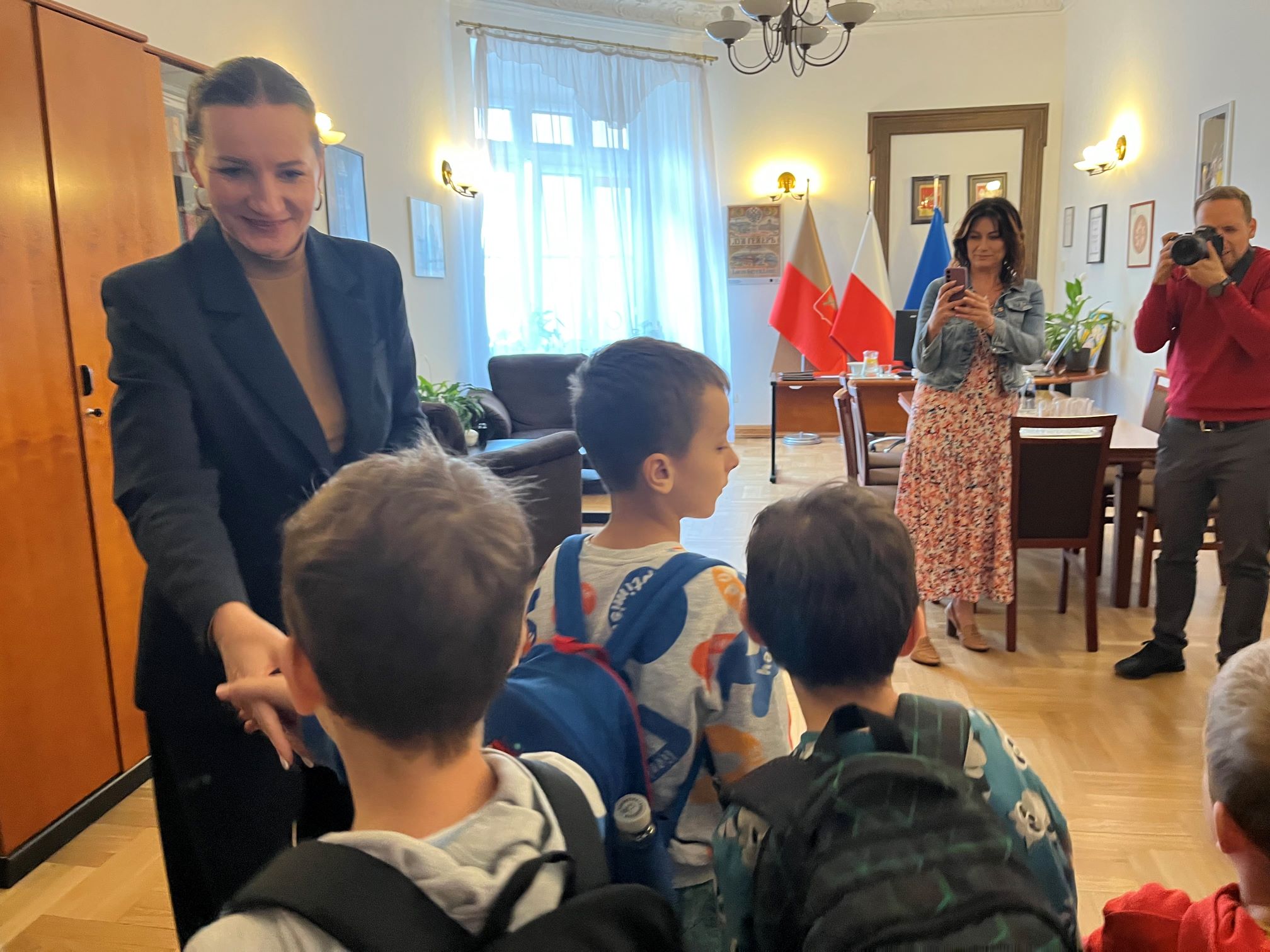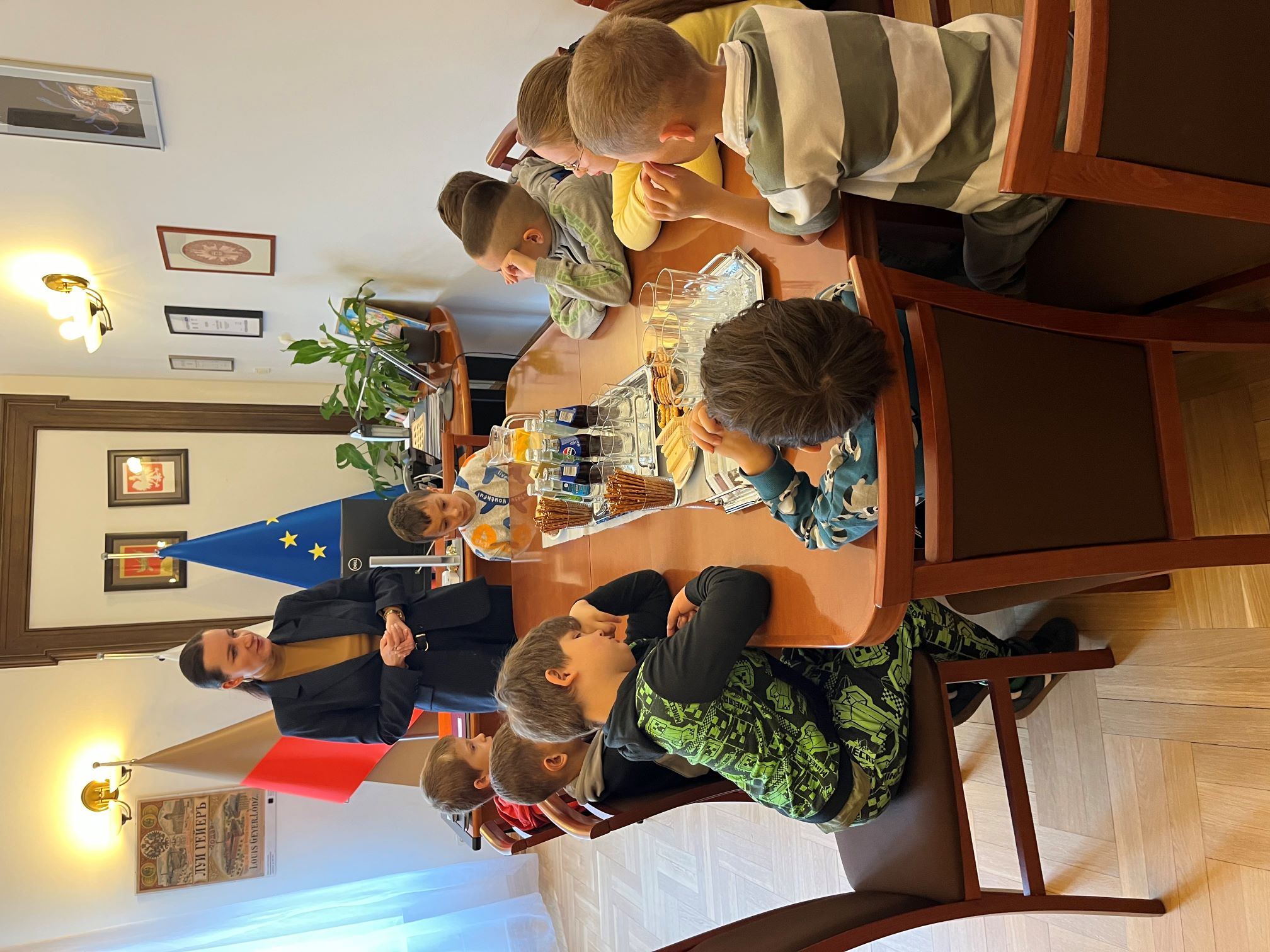 Następnie zostaliśmy zaproszeni do środka. Zwiedziliśmy m.in. sale konferencyjne, a później odwiedziliśmy gabinet pani wiceprezydent Małgorzaty Wodnickiej-Moskwy. Dowiedzieliśmy się wielu ciekawych rzeczy o pracy urzędu, zarządzaniu miastem oraz funkcjonowaniu szkół.