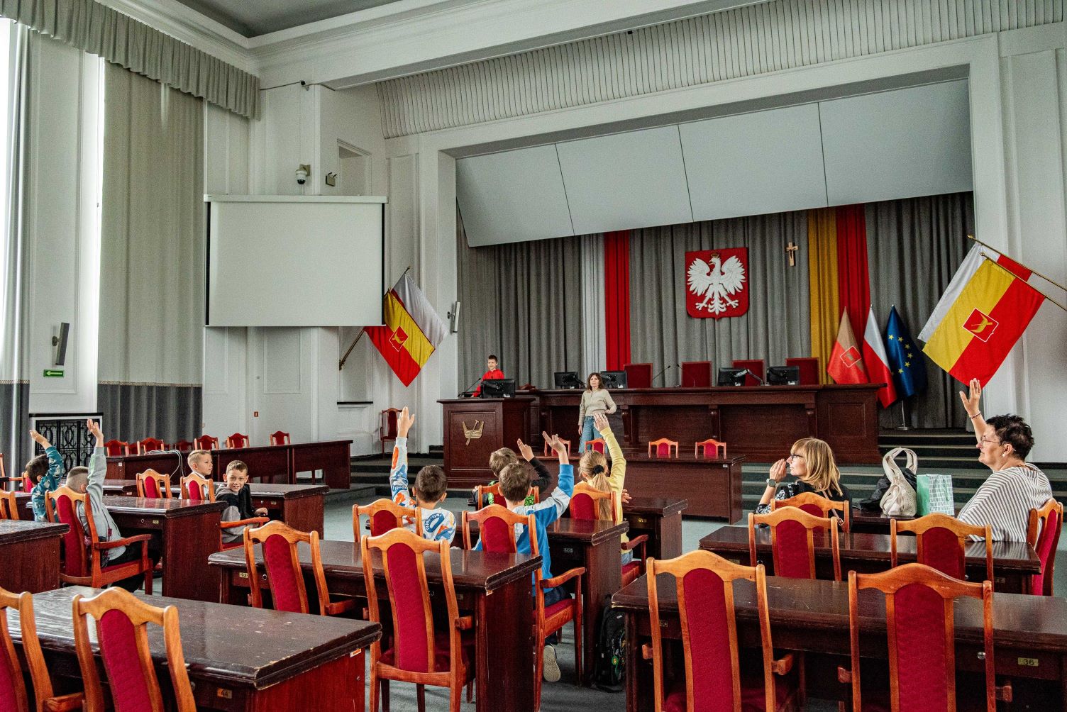 Pani wiceprezydent zaprosiła nas także na słodki poczęstunek, który wszystkim bardzo smakował. Po przerwie odwiedziliśmy salę obrad, gdzie mogliśmy pobawić się w prawdziwych prezydentów i radnych – układaliśmy własne programy i prezentowaliśmy je z mównicy, a następnie głosowaliśmy nad naszymi pomysłami.